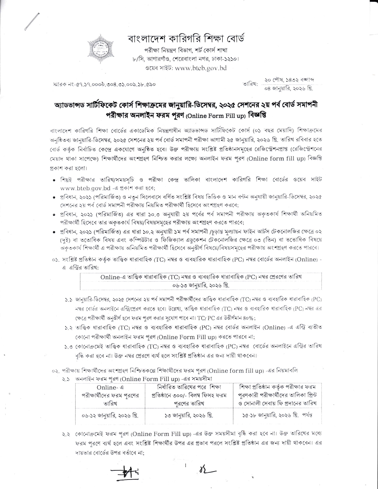 অ্যাডভান্সড সার্টিফিকেট কোর্স শিক্ষাক্রমের জানুয়ারি-ডিসেম্বর, ২০২৫ সেশনের ২য় পর্ব বোর্ড সমাপনী পরীক্ষার অনলাইন ফরম পূরণের বিজ্ঞপ্তি